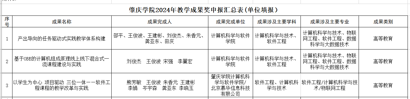 附件:肇庆学院2024年教学成果奖申报汇总表