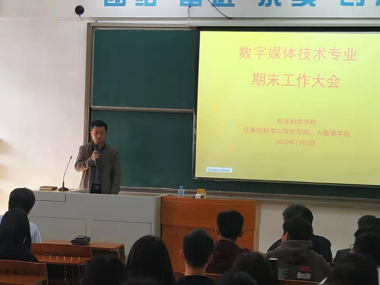 2020年1月8日上午11点,计算机科学与软件学院、大数据学院在第二教学楼101教室召开与教育科学学院数字媒体技术专业学生的交接大会。参会人员有:世界杯平台邵平院长、李坚书记、王俊波副院长、陈彦雄副书记;教育科学学院张旭东院长、谢佐永书记、刘远君副书记;辅导员、班主任以及数字媒体技术专业全体学生。会议由教育科学学院党委书记谢佐永主持。