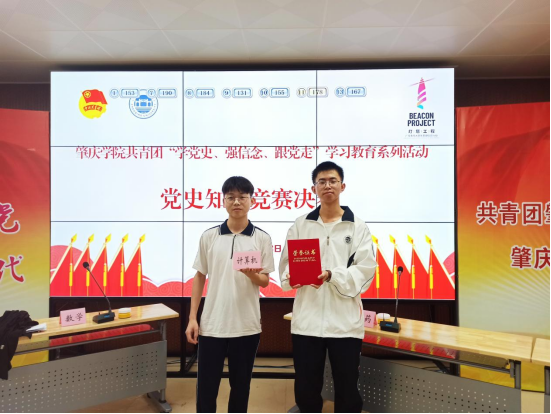 黄泽彦、刘银河通过学院初赛进入党史知识竞赛决赛,并与于2021年4月28日决赛中获得肇庆学院“学习党史、强信念、跟党走”学习教育系列活动之党史知识竞赛优秀奖。