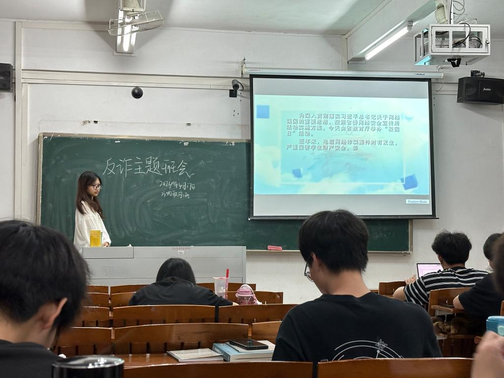 为应对当下屡见不鲜的网络诈骗问题,计算机科学与软件学院要求各班在2024年4月17日开展防诈骗主题班会,组织全体师生观看由广东教育厅和广东反诈中心宣传制作的反诈宣传教育片。教育片中呈现了各类网络诈骗手段的实际案例,并详细介绍了防范诈骗的方法和技巧。通过生动的演绎和形象的画面,让师生们更直观地了解了网络诈骗的危害性和防范重要性。