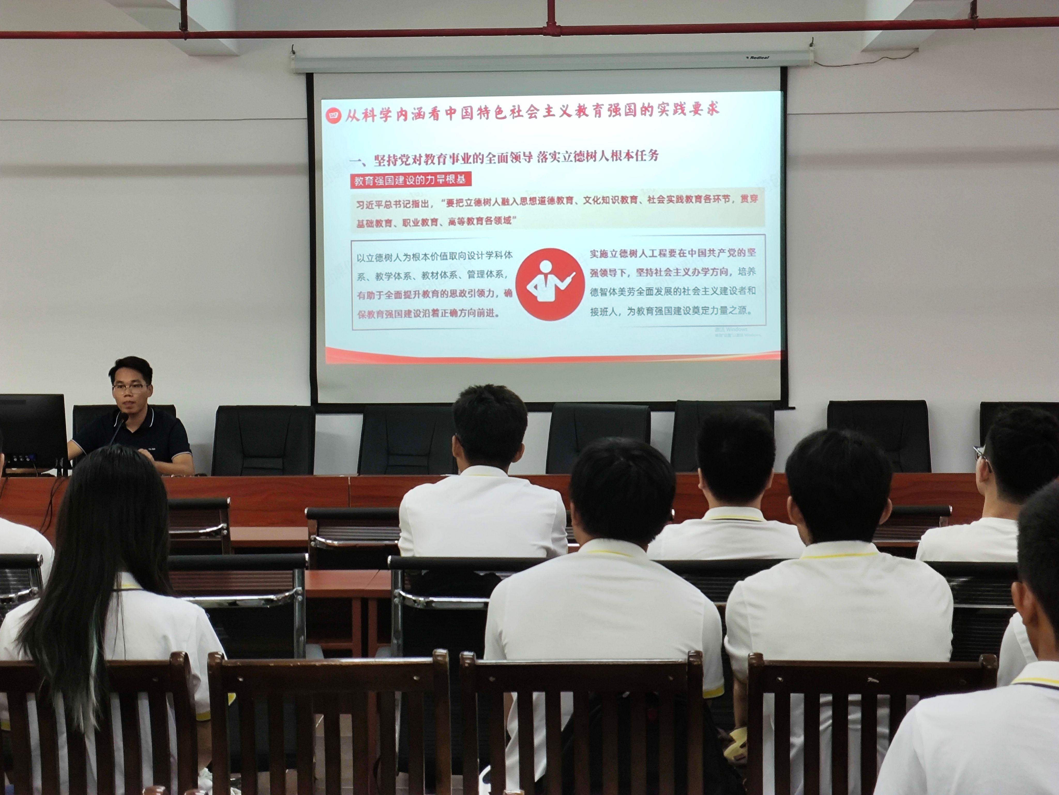 9月20日,学院团委开展“深刻把握中国特色社会主义 教育强国的科学内涵”主题团课,与团委团干部认真学习习近平总书记在全国教育大会上的重要讲话精神。