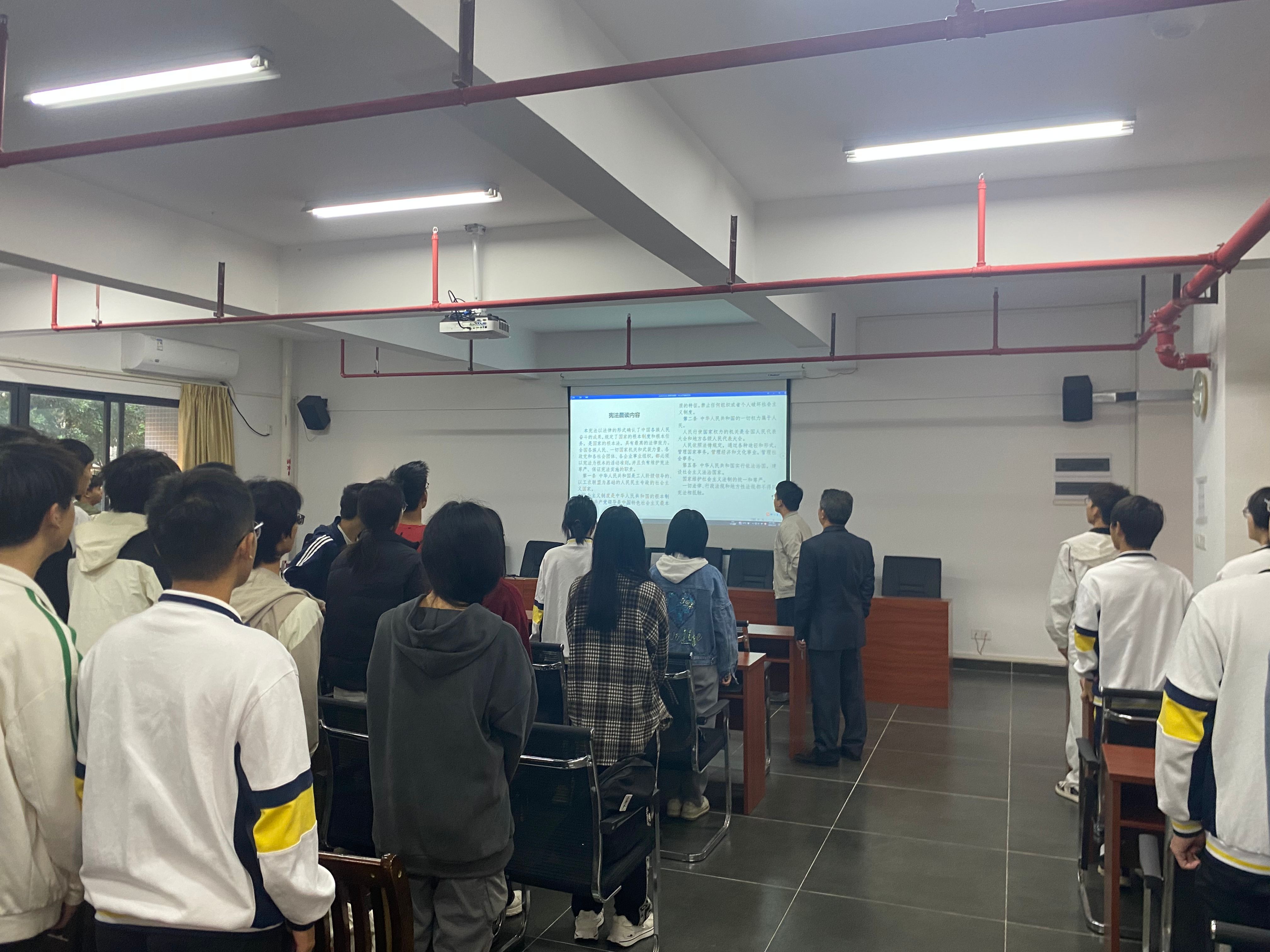 在活动直播结束后,学院组织师生进行宪法宣读,在学院团委书记梁燕龙老师的领读下,全体师生齐声宣誓,字字铿锵有力,不仅传递出对宪法的崇高敬意,更彰显出法治精神在每个人心中的生根发芽。