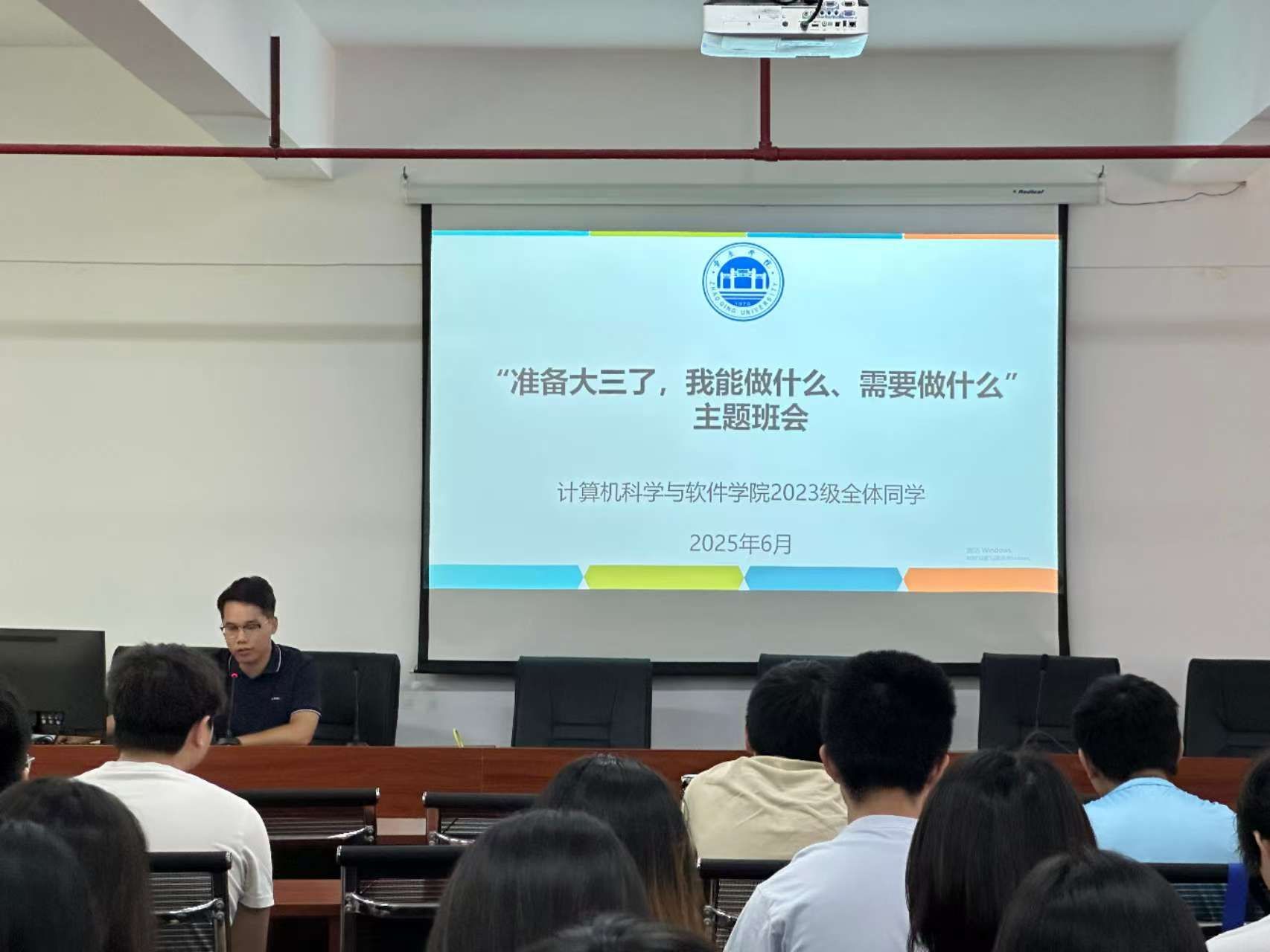 本次班会为计算机科学与软件学院 2023 级全体学生提供了明确的方向和实用的建议,帮助他们在接下来大三这一关键阶段做好充分准备,为未来的职业发展和个人成长奠定坚实基础。同学们纷纷表示,通过本次班会,他们对大三的学习和生活有了更清晰的规划,对未来充满信心。