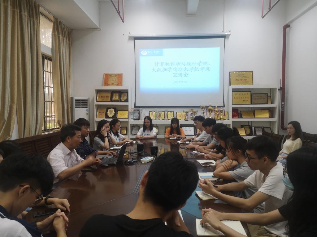临近期末,考试在即,负责学风建设辅导员邹卫老师,向各班长强调学校考试纪律,诚信考试是合格大学生必须具备的学习品质,并为同学们分析考试作弊百害而无一利,希望班长将本次考纪考风相关要求及时传达到各班同学,副书记陈彦雄随即对本次考试工作进行强调,希望同学们认真备考,端正考试态度,营造良好的考风,预祝同学们考试顺利,考出好成绩。