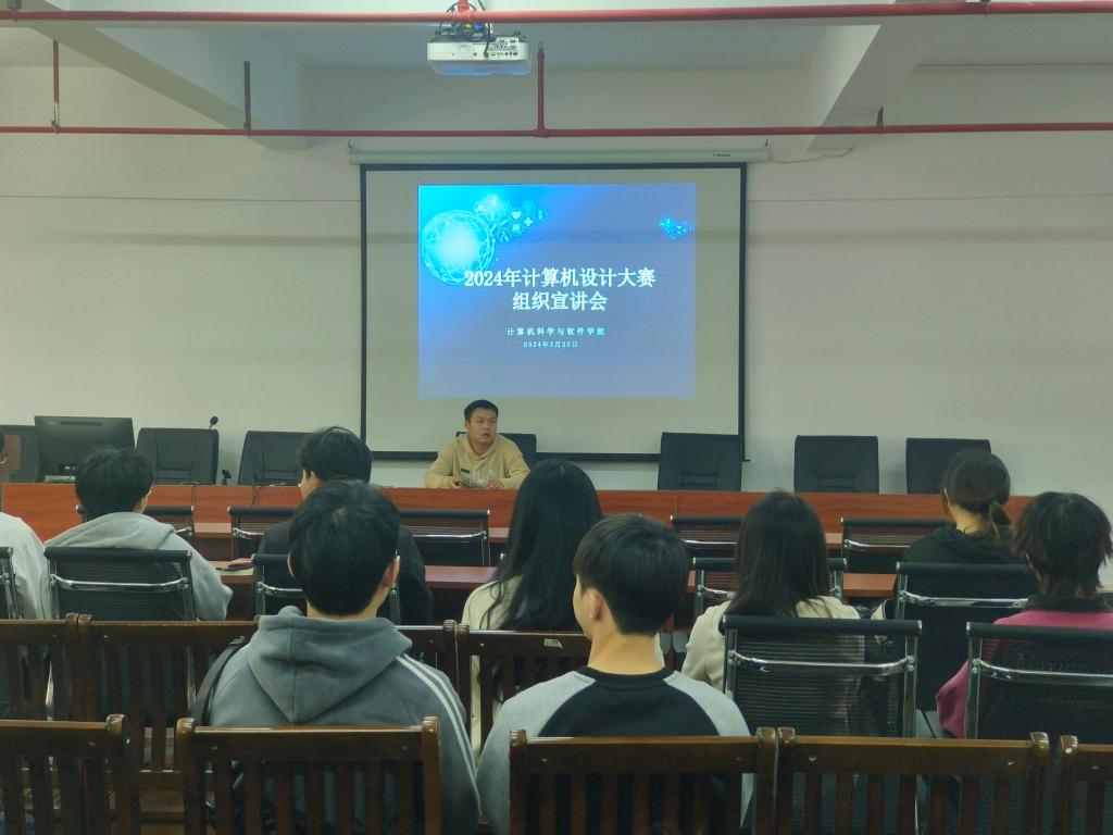2024年3月20日,学院辅导员邹卫组织2024年计算机设计大赛参加宣讲会,学院参赛队伍共计45队同学参加,计算机设计大赛始创于2008年,是由教育部高等学校计算机类专业教学指导委员会、教育部高等学校软件工程专业教学指导委员会、教育部高等学校大学计算机课程教学指导委员会、教育部高等学校文科计算机基础教学指导分委员会、中国教育电视台联合主办。