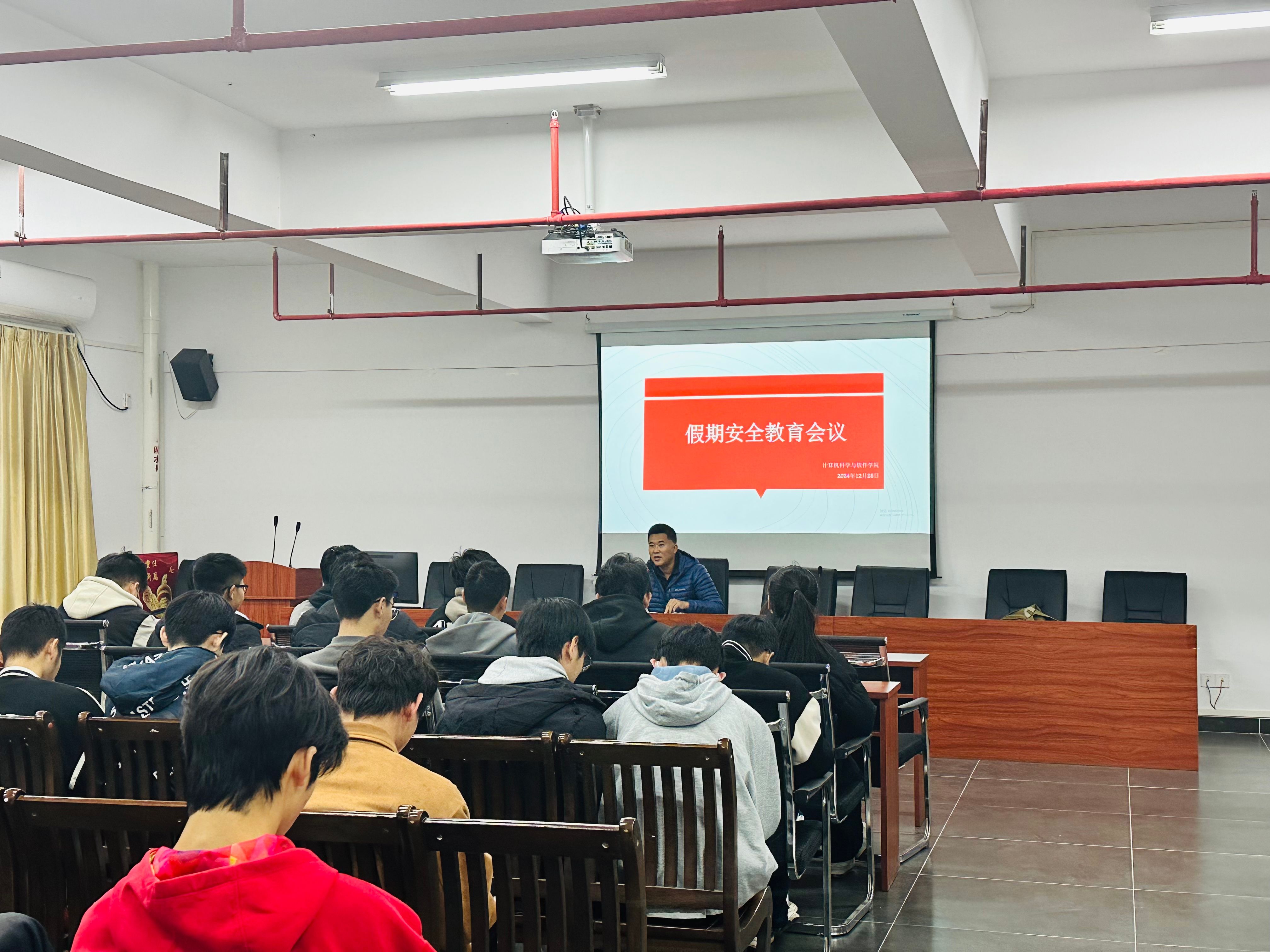 12月25日,计算机科学与软件学院组织召开假期安全教育会议。本次会议由学院辅导员张文台老师主持,学院全体班长、副班长参加。
