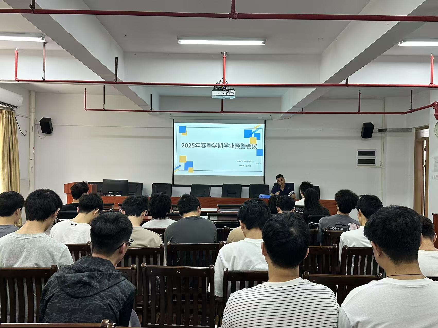 4月28日,计算机科学与软件学院于实训中心315召开学业预警会议,旨在助力学生明确学业方向,增强学习动力。学院副书记陈彦雄及符合学业预警标准的学生参会,会议由辅导员张文台老师主持。