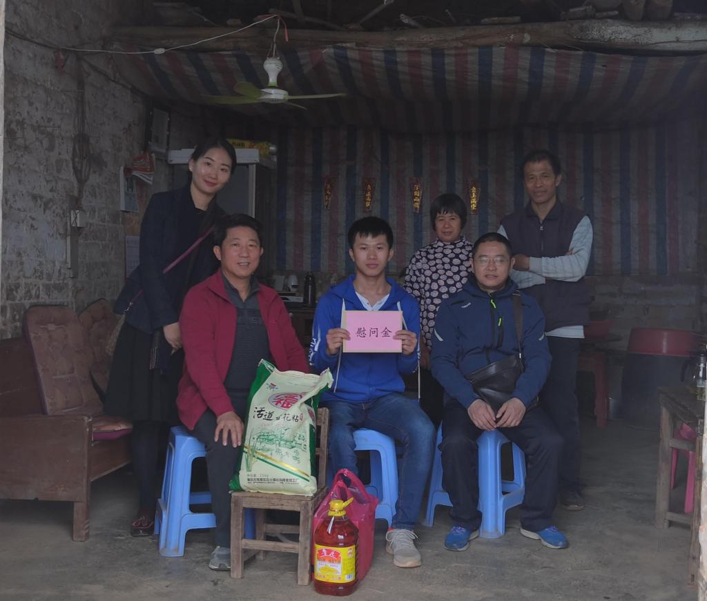 为深入了解家庭经济困难学生的家庭情况,在春节来临之际给困难学生家庭送去慰问和祝福,2020年1月16日,世界杯平台陈彦雄副书记带领辅导员张梦娇、班主任申伟老师乘车前往肇庆市德庆县马圩镇独山儿村困难生李炳权家开展走访慰问活动。