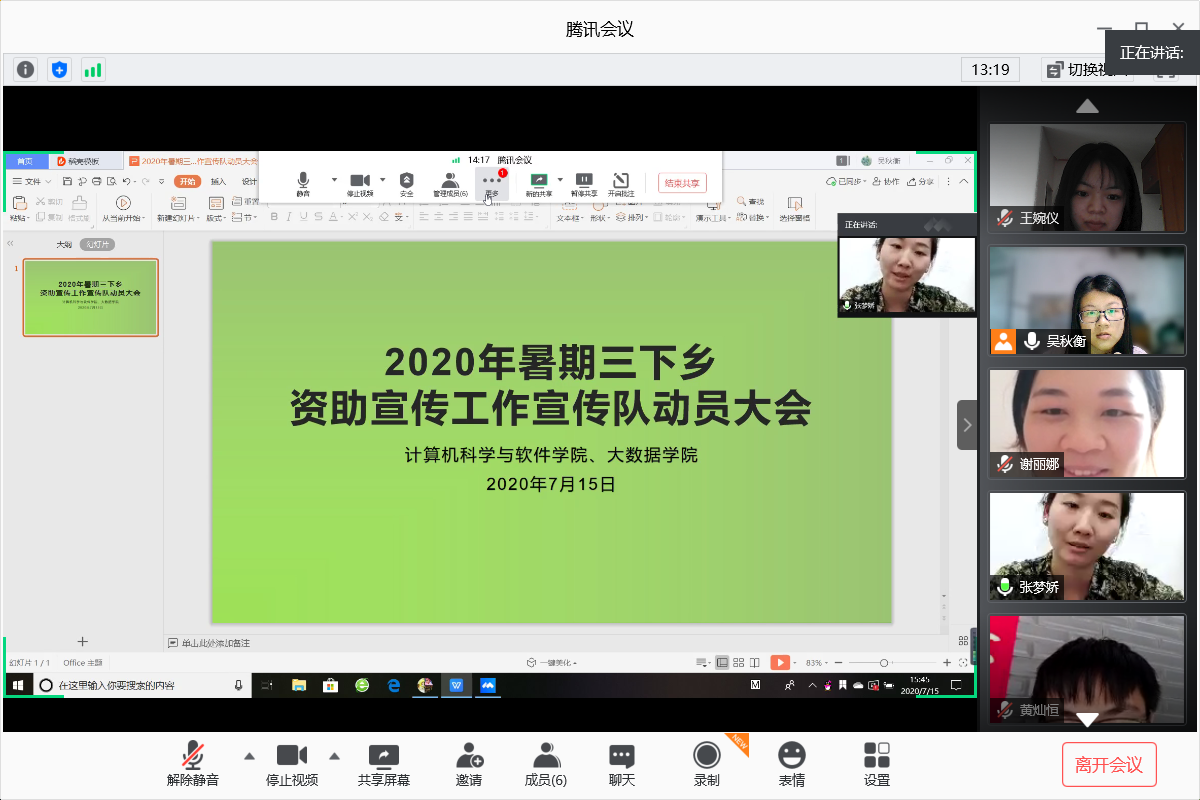 为使暑期三下乡宣传宣传工作顺利开展,世界杯平台资助工作宣传队带队老师张梦娇老师于7月15日,线上召开2020年暑期三下乡资助工作宣传队动员大会。