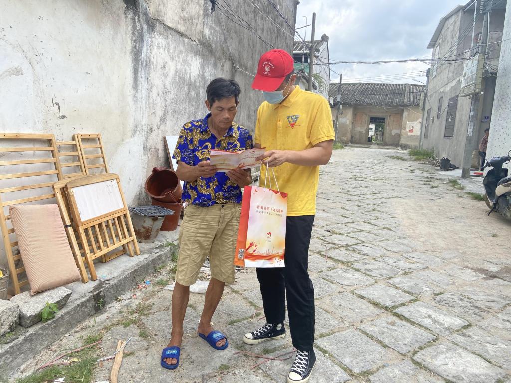 通过蕉园村村委,我们了解到蕉园村对资助政策的了解程度及相关工作的实施情况,宣传队队员们向村民发放资助宣传手册,向村民们普及国家资助和助学贷款等政策,为他们解决疑惑,系统地讲述了生源地助学贷款相关事项,以便村民们对资助政策有更加深入的了解,同时也邀请了家长及小孩填写调查问卷,为宣传工作查漏补缺,完善资助宣传工作。