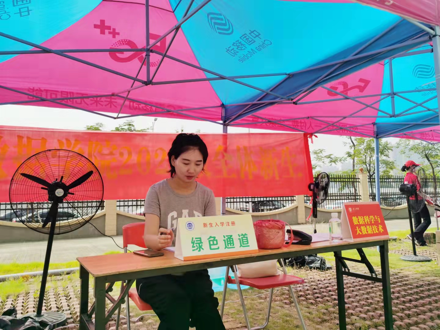 为迎接2021级家庭经济困难学生,使其顺利入学,世界杯平台于9月18日在计算机科学与软件学院、大数据学院2021级新生迎新接待点设立“绿色通道”办理点,展开“绿色通道”送温暖活动。