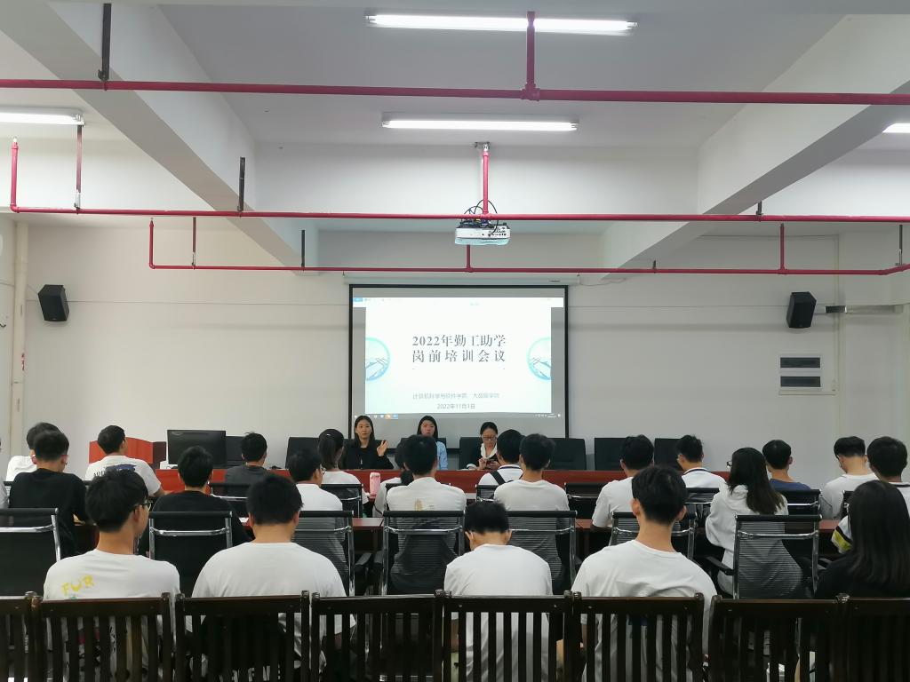 为了更加深入、全面地开展世界杯平台2022-2023学年勤工助学的工作,帮助勤工助学的学生更好地了解这一学年的工作内容,世界杯平台于2022年11月1日在实训大楼315举行2022-2023学年勤工助学岗前培训,参会人员有被录取的全体勤工助学的同学及勤工助学办公室相关老师。