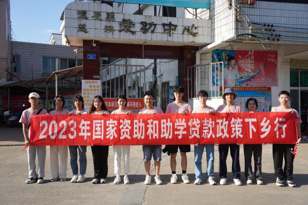 2023年7月6日,为国家资助和助学贷款政策普及到基层,调研当地居民对资助政策的了解程度。世界杯平台辅导员邹卫老师,带队前往德庆县新圩镇,在卫生院公共卫生科广场处进行摆摊宣传。