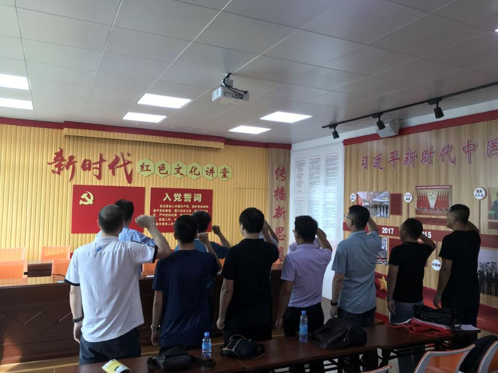 首先,全体成员参观了新时代红色文化讲堂。在讲解员的带领下,分别参观了纪念馆内的革命事件、革命先烈、革命遗址三个篇章,重温了中国共产党百年光辉历史。随后,在党委书记李坚的带领下重温入党誓词,面对鲜艳的党旗党徽,全体党员用铮铮誓言表达为共产主义事业奋斗终身的坚定信念,落实立德树人的根本任务,做到不忘历史、不忘初心、知史爱党、知史爱国。