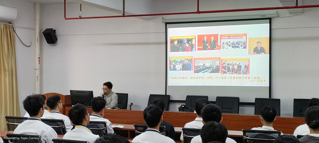 梁燕龙老师就习近平总书记在各时期的讲话来剖析其中为人处世的箴言、成长成才的指导以及创新创造的激励来激起同学们为梦想不懈奋斗的蓬勃力量,希望同学们树理想、爱祖国、担责任、勇奋斗、练本领、修品德,不忘初心跟党走,做建功作为的新时代青年。