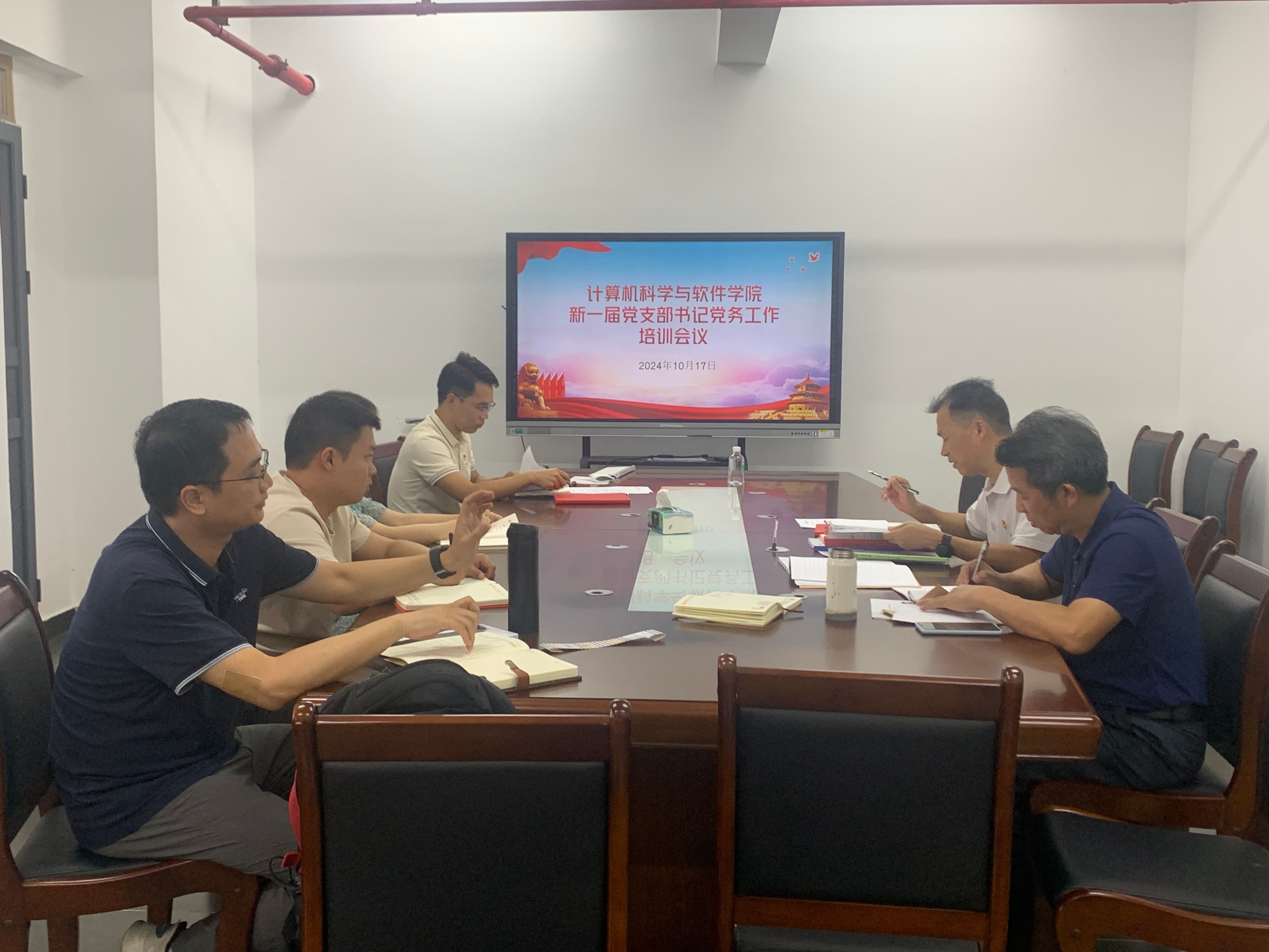 为进一步提高新一届党支部书记履职尽责能力,10月17日下午,计算机科学与软件学院在学院319会议室召开新一届党支部书记培训工作会议。学院党委书记黎天宇、党委副书记陈彦雄和全体党支部书记参会,会议由黎天宇主持。
