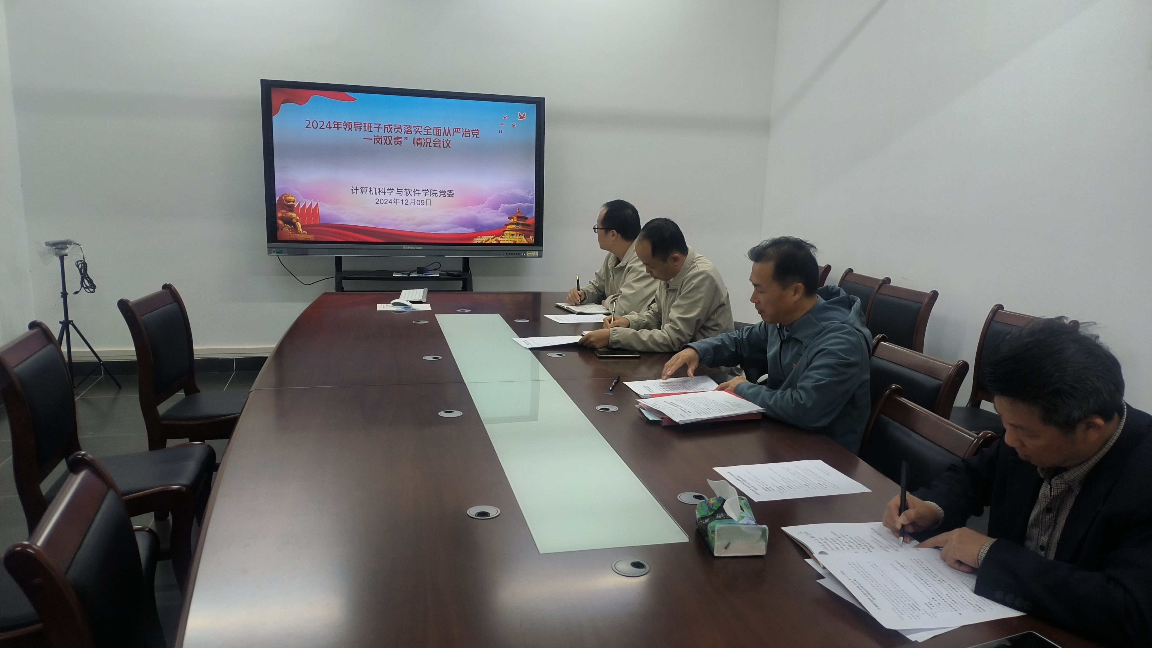 2024年12月9日下午,计算机科学与软件学院在学院319会议室召开党政班子成员落实全面从严治党“一岗双责”情况会议,听取班子成员本年度落实全面从严治党“一岗双责”情况,会议由学院党委书记黎天宇主持,全体党政班子成员参加。