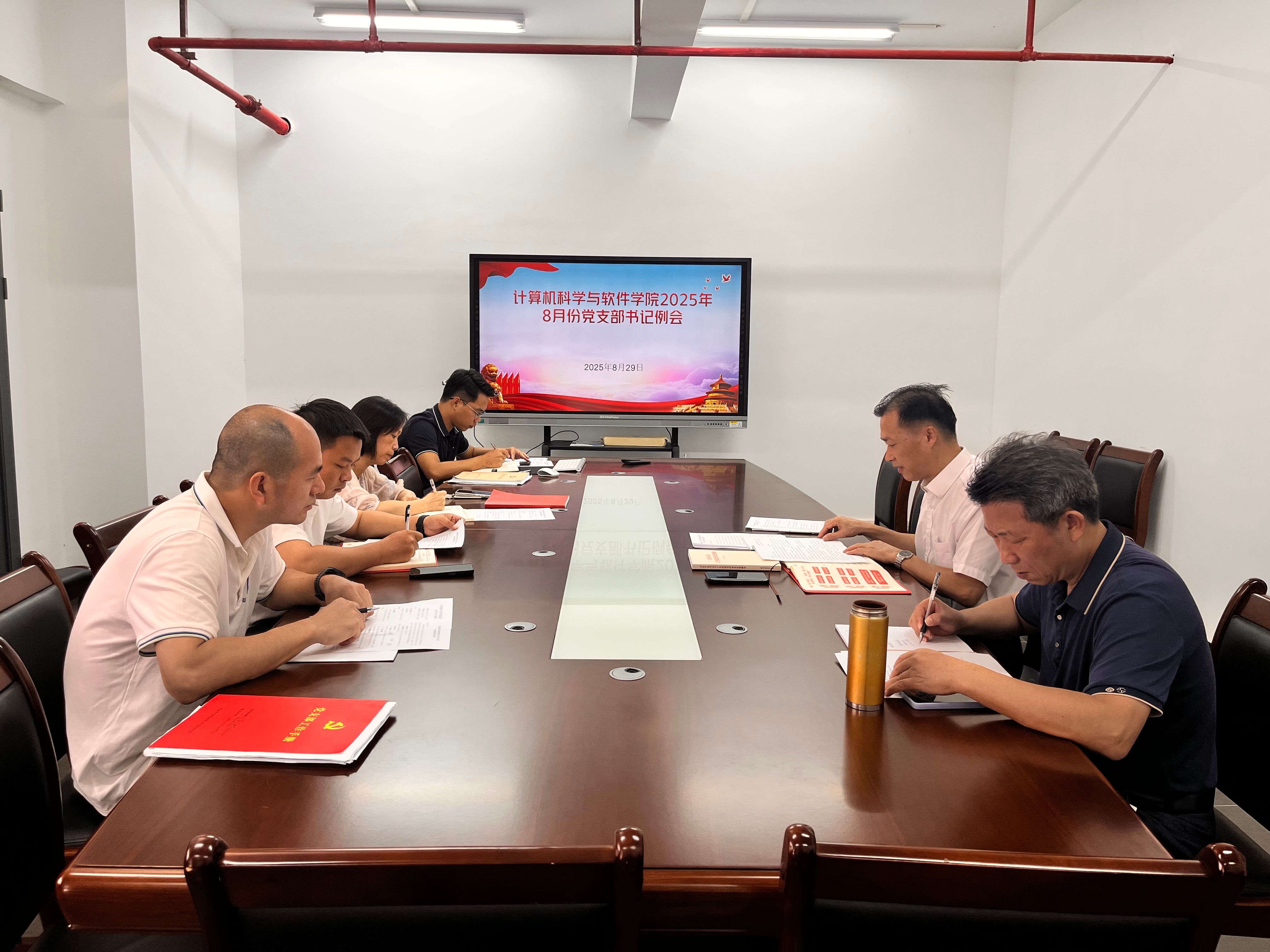 本网讯 2025年8月29日上午,计算机科学与软件学院在学院319会议室召开8月党支部书记工作例会。学院党委书记、副书记,专职组织员及各师生党支部书记参加会议。会议由学院党委书记黎天宇主持。