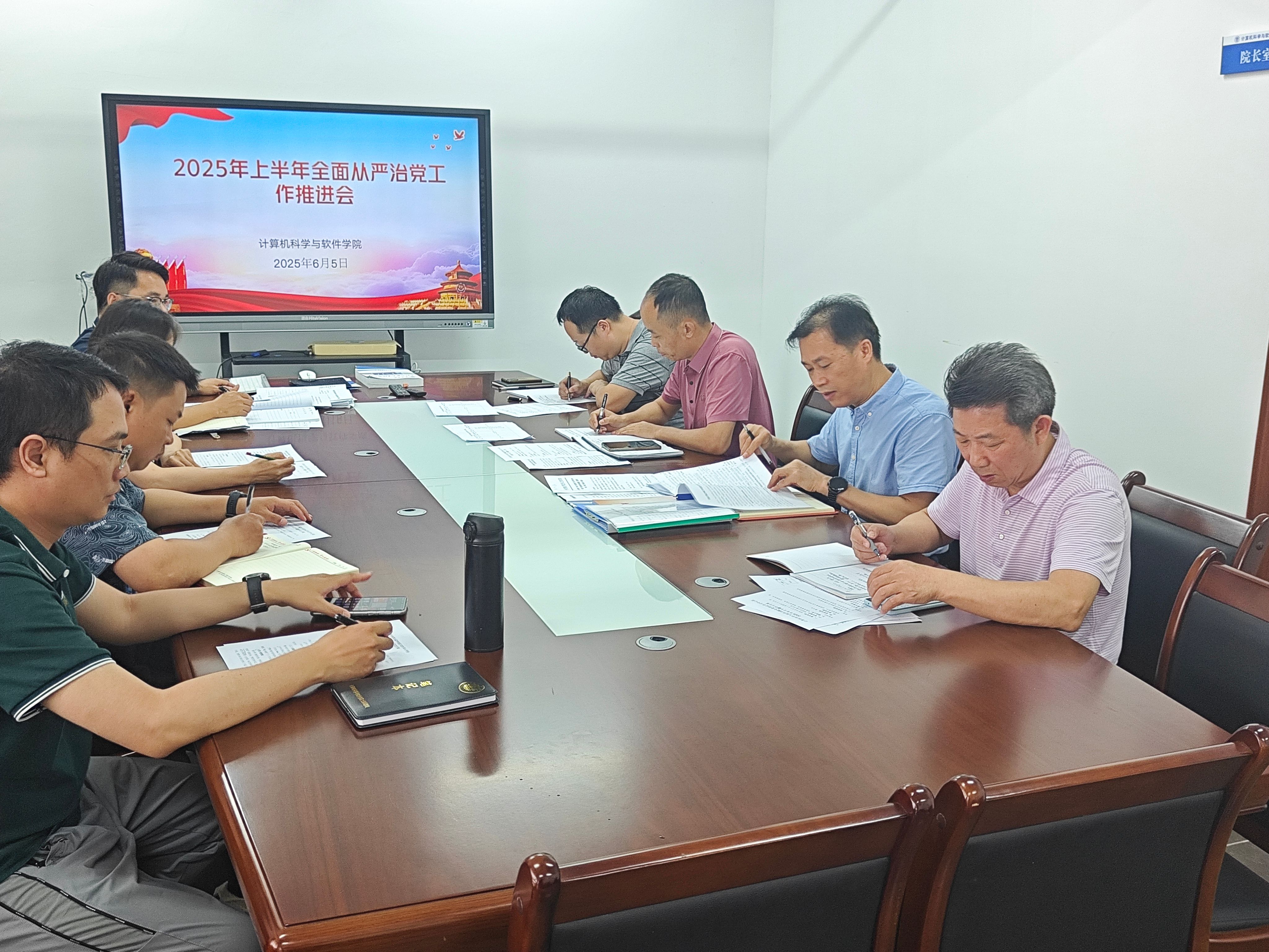 6月5日上午,计算机科学与软件学院召开全面从严治党工作推进会,深入学习贯彻学校全面从严治党工作部署,扎实推进学院党风廉政建设和反腐败工作,强化群团工作引领,筑牢意识形态阵地。学院党政班子成员、党支部书记及群团组织负责人参加会议,会议由学院党委书记黎天宇主持。