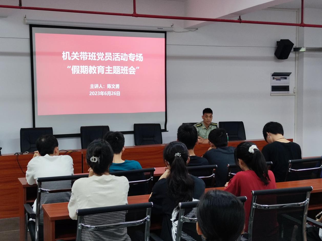 6月26日上午,为了强化假期安全教育,提高同学们的安全意识,机关带班党员保卫处陈文勇老师给所带班级在实训楼315会议室召开了以“暑期安全教育”为主题的班会,陈文勇老师重点围绕交通安全、出游安全、饮食卫生安全、财产安全、人身安全、自我保护等安全问题进行强化教育。同时,还通过一些贴近生活的事例,指导同学们如何及时防范、远离危险源等。