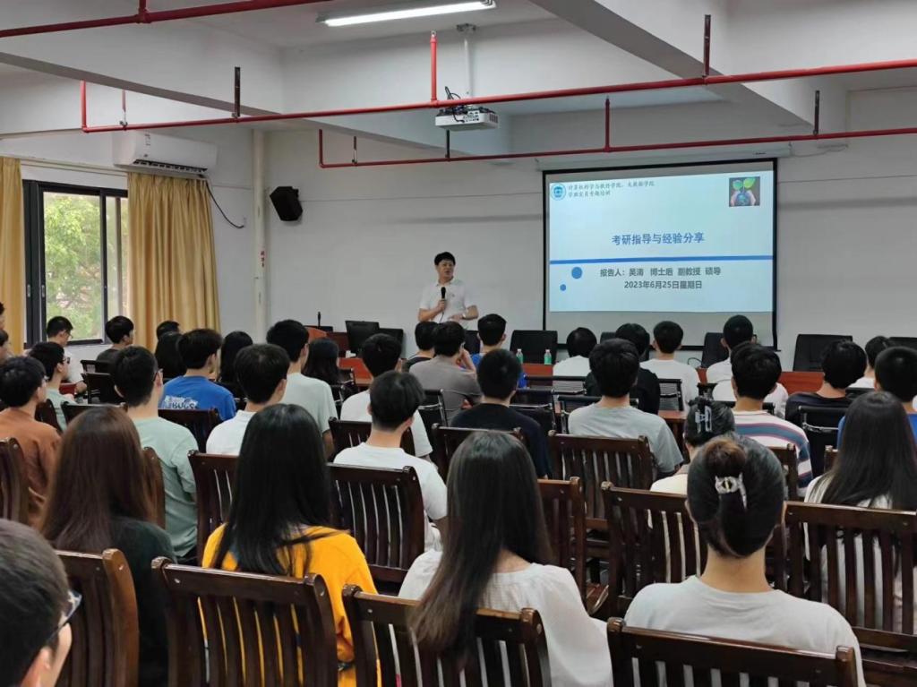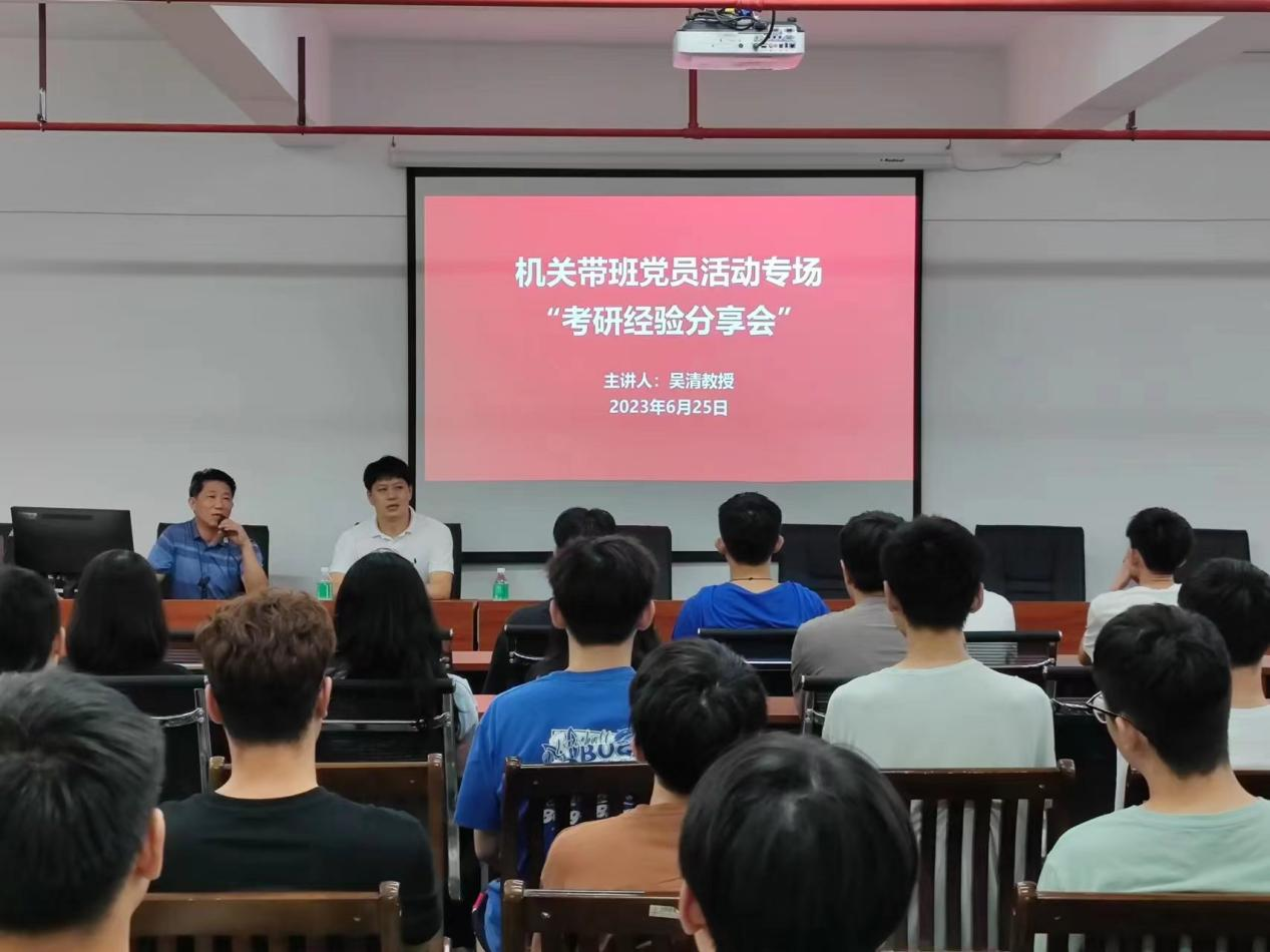 6月25日下午,世界杯平台机关带班党员发展规划处负责人吴清博士在实训楼315会议室为世界杯平台有意愿考研的同学提供经验分享和学习资讯,帮助大家更好地备战考研。