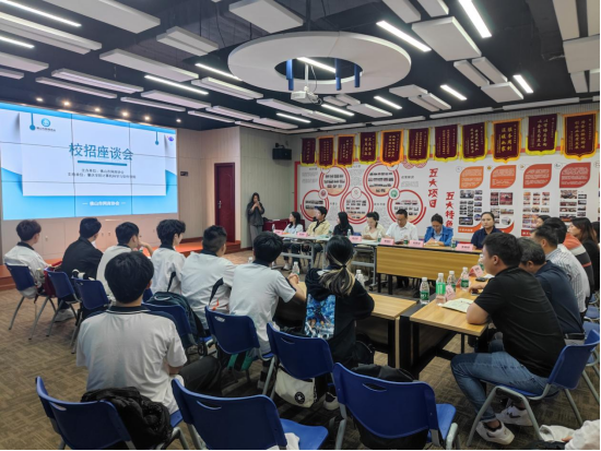 除了走访企业,佛山市网商协会还专门组织了8家企业,与学院开展了现场招聘座谈会,双方就人才招聘和院企合作等相关事宜进行了深入交流。黎天宇书记介绍了学院人才培养的基本情况和2025届毕业生情况,希望通过本次走访,进一步了解相关行业的发展趋势,摸清用人单位对人才的实际需求,为毕业生争取更多的就业机会,拓展更多的就业岗位。同时还表达了希望能建立学院与用人单位之间的密切联系,加强院企合作,深化产教融合,构建新型学生培养模式,实现学生实习就业一体化。企业负责人介绍了本公司的基本情况和用人需求,对我校人才培养质量给予高度评价和认可,希望学院多推荐合适的毕业生来实习和求职应聘,并现场与学子们进行深入沟通交流,与部分学生达成了实习与就业初步意向。此外,佛山市网商协会还就进一步加强双方合作和组织相关企业来学校开展招聘活动提出了初步计划。