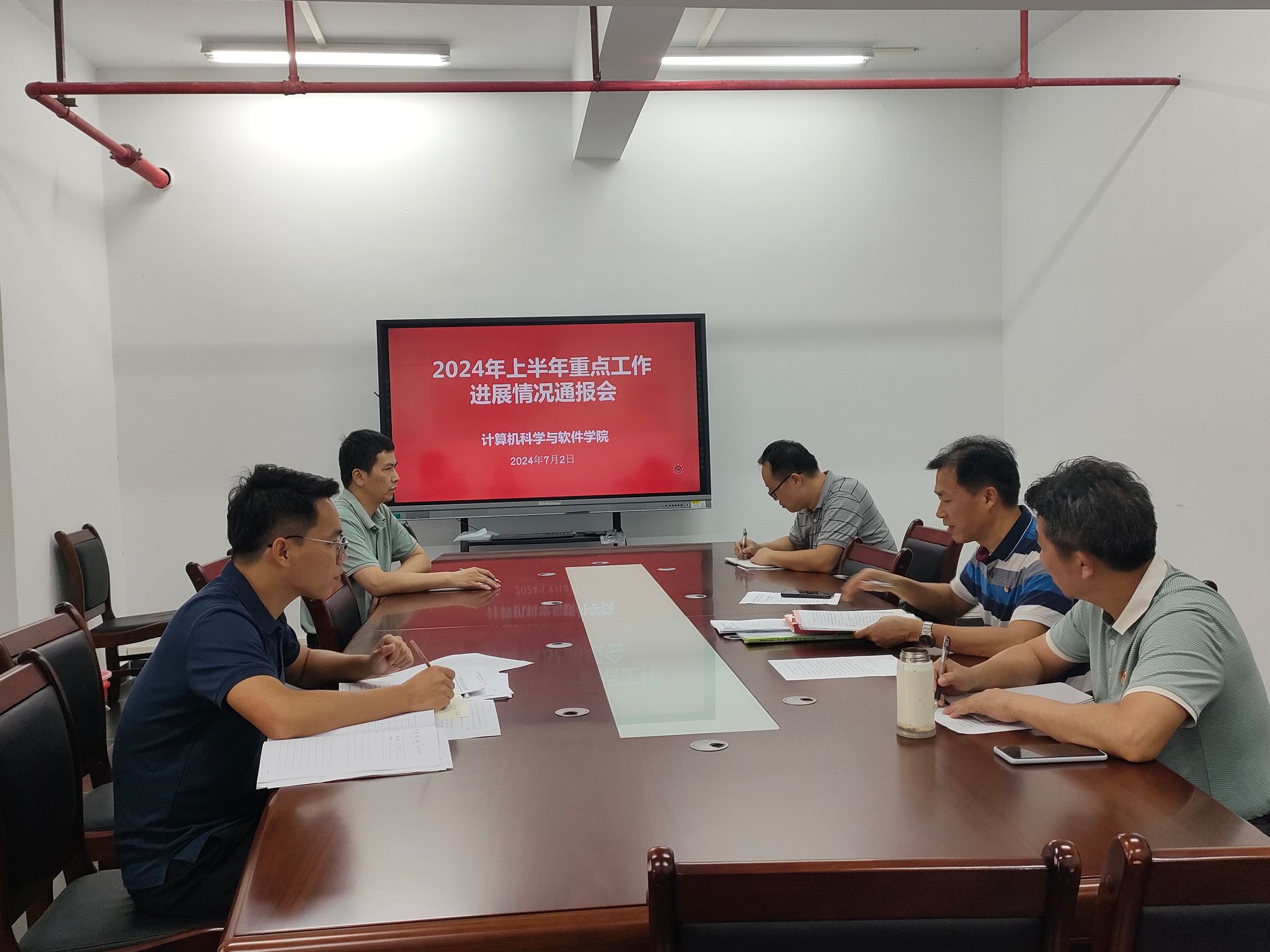 2024年7月2日,计算机科学与软件学院召开2024年上半年领导班子成员落实全面从严治党责任和“一岗双责”要求汇报会暨2024年上半年重点工作进展情况通报会。学院党委书记黎天宇主持会议,学院党政领导班子成员专职组织员参会。