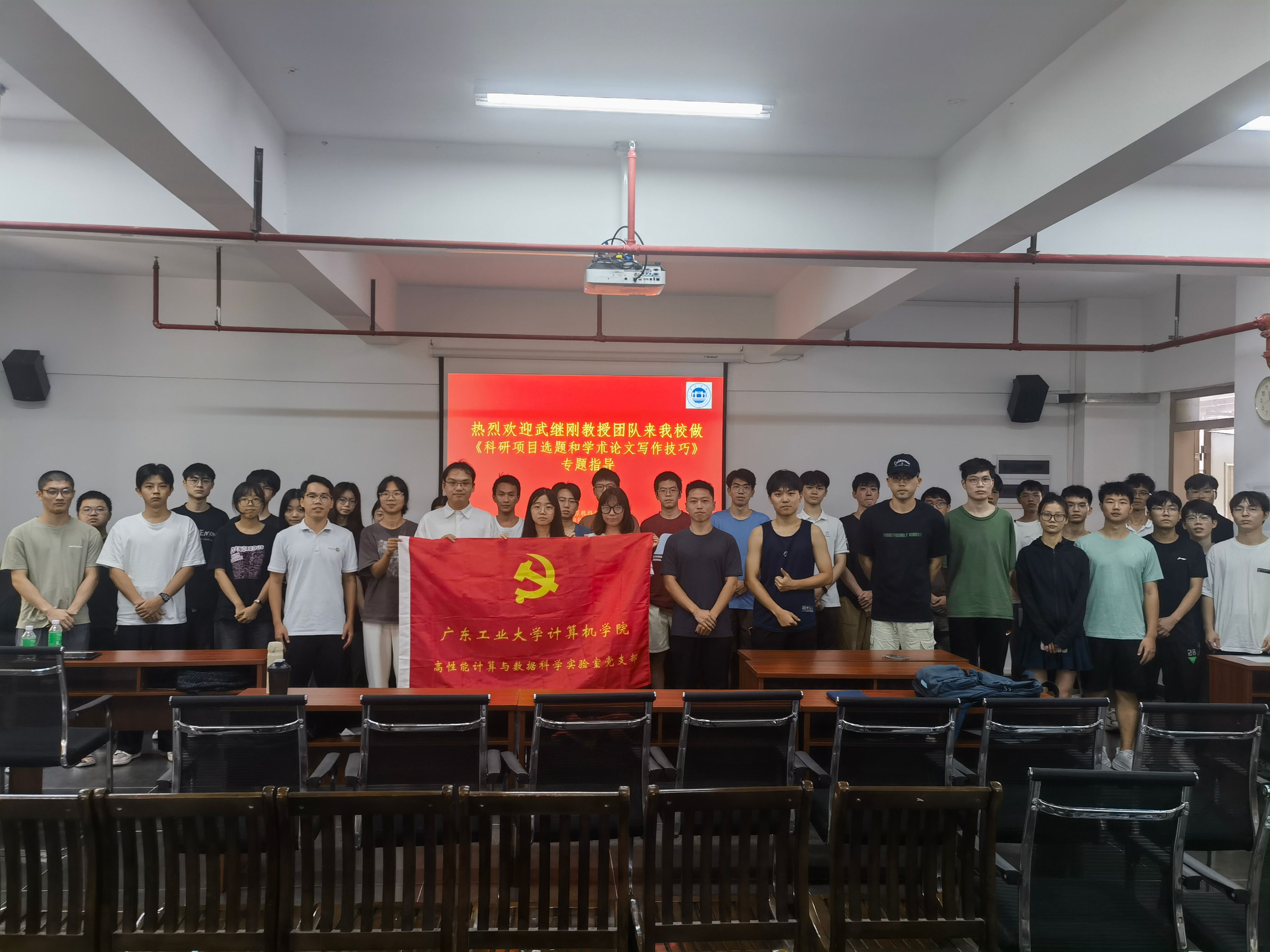 目前正值硕士新生入学和本科毕业生选题季,为做好与我校世界杯平台的手拉手帮扶工作,积极推进电子信息专业硕士人才培养和提升本科生毕业设计质量,广东工业大学武继刚教授与我校正在广工访学的邵平教授商定,武教授安排其四位优秀研究生组成科研团队,于9月28日上午来校开展《科研项目选题和学朮论文写作技巧》专题指导,我校电子信息专业硕士研究生、计算机相关专业毕业班的本科学生70余人在实训中心大楼315会议室参加了辅导会。