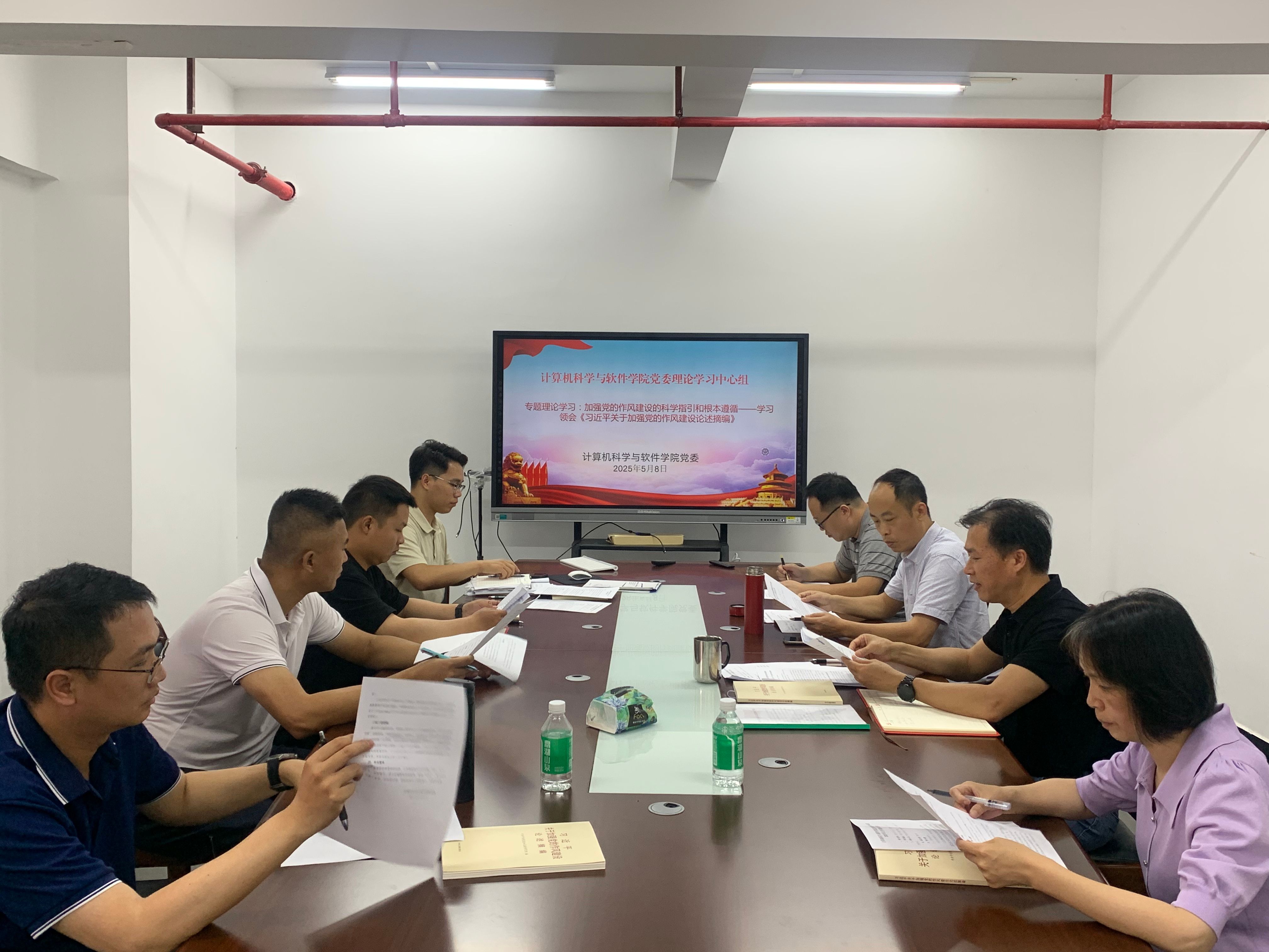 5 月 8 日上午,计算机科学与软件学院党委理论学习中心组在学院办公楼 319 室开展了专题学习活动。会议由学院党委书记黎天宇主持,学院党委委员、党政班子成员、专职组织员、党支部书记等参加了此次学习。