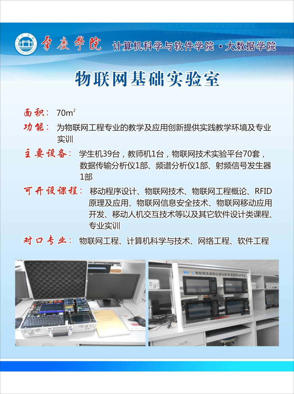 主要课程:计算机导论、离散数学、高级语言程序设计、数字逻辑、计算机组成原理、数据结构、面向对象程序设计(JAVA)、操作系统、数据库系统原理、嵌入式系统原理、RFID原理及应用、无线传感网技术、人工智能、Web开发技术、移动设备开发、物联网应用系统设计等。